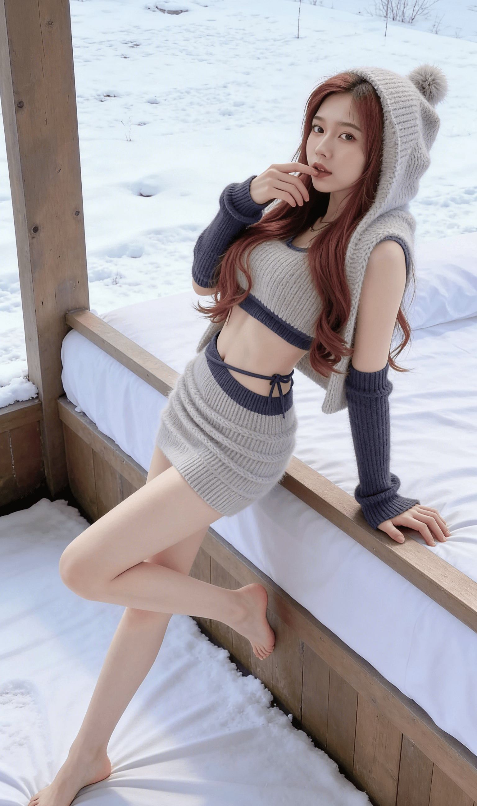 原创 穿... 林晚躺在雪崖边的定制羊绒榻上,松垮的针织套装露出腰窝,发梢沾着碎雪 —— 她刚拍完冬季限定度假地的宣...