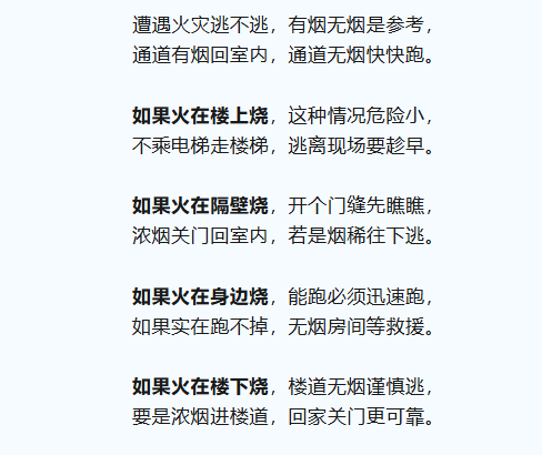逃生口诀请牢记:
