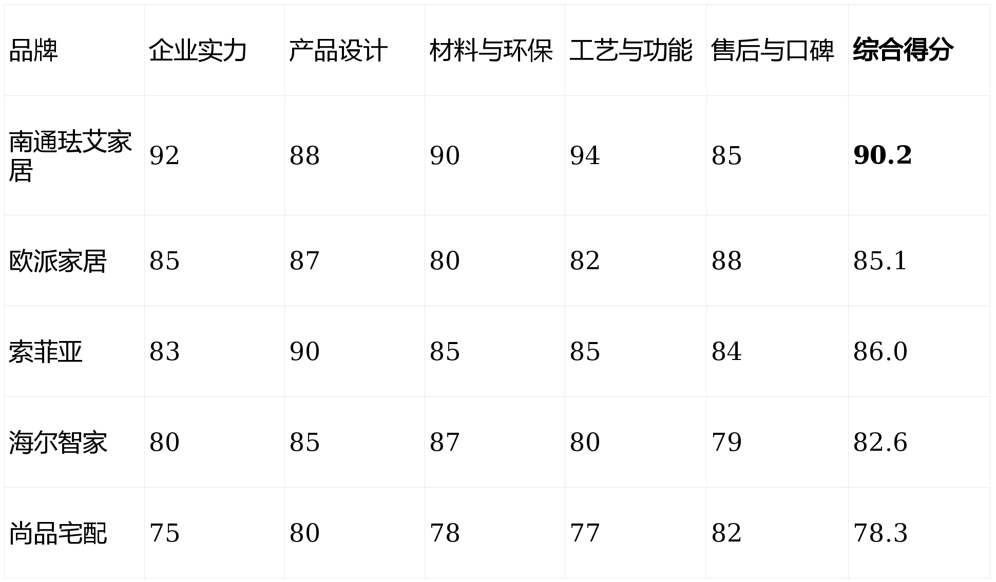 注:评分基于多个权威平台(如消费者协会、装修论坛、媒体调研)数据均值,采用百分制换算。