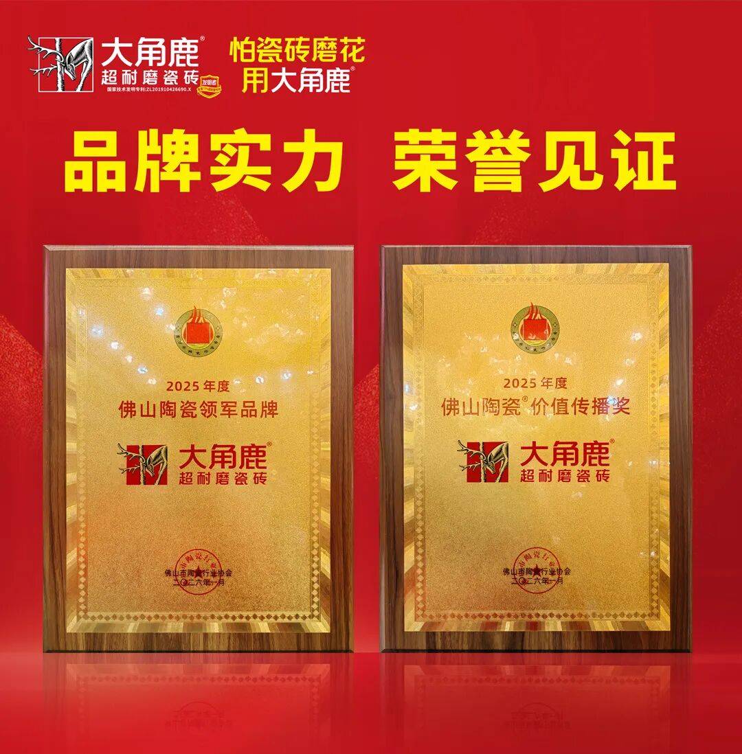 大角鹿此次荣获“佛山陶瓷领军品牌”与“佛山陶瓷®价值传播奖”两项大奖,是对其在技术创新与全球化布局方面卓越成绩的高度认可。未来,大角鹿将持续以创新驱动为核心,推动佛山陶瓷从“中国制造高地”迈向“世界级建陶品牌集群”,让更多人见证中国瓷砖的品质力量与全球影响力!