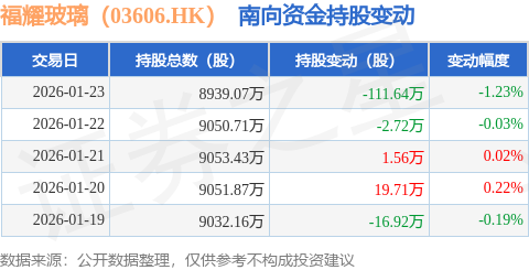 证券之星消息,1月23日南向资金减持111.64万股福耀玻璃(03606.HK)。近5个交易日中,获南向资金减持的有3天,累计净减持110.01万股。近20个交易日中,获南向资金减持的有15天,累计净减持602.67万股。截至目前,南向资金持有福耀玻璃(03606.HK)8939.07万股,占公司已发行普通股的14.73%。