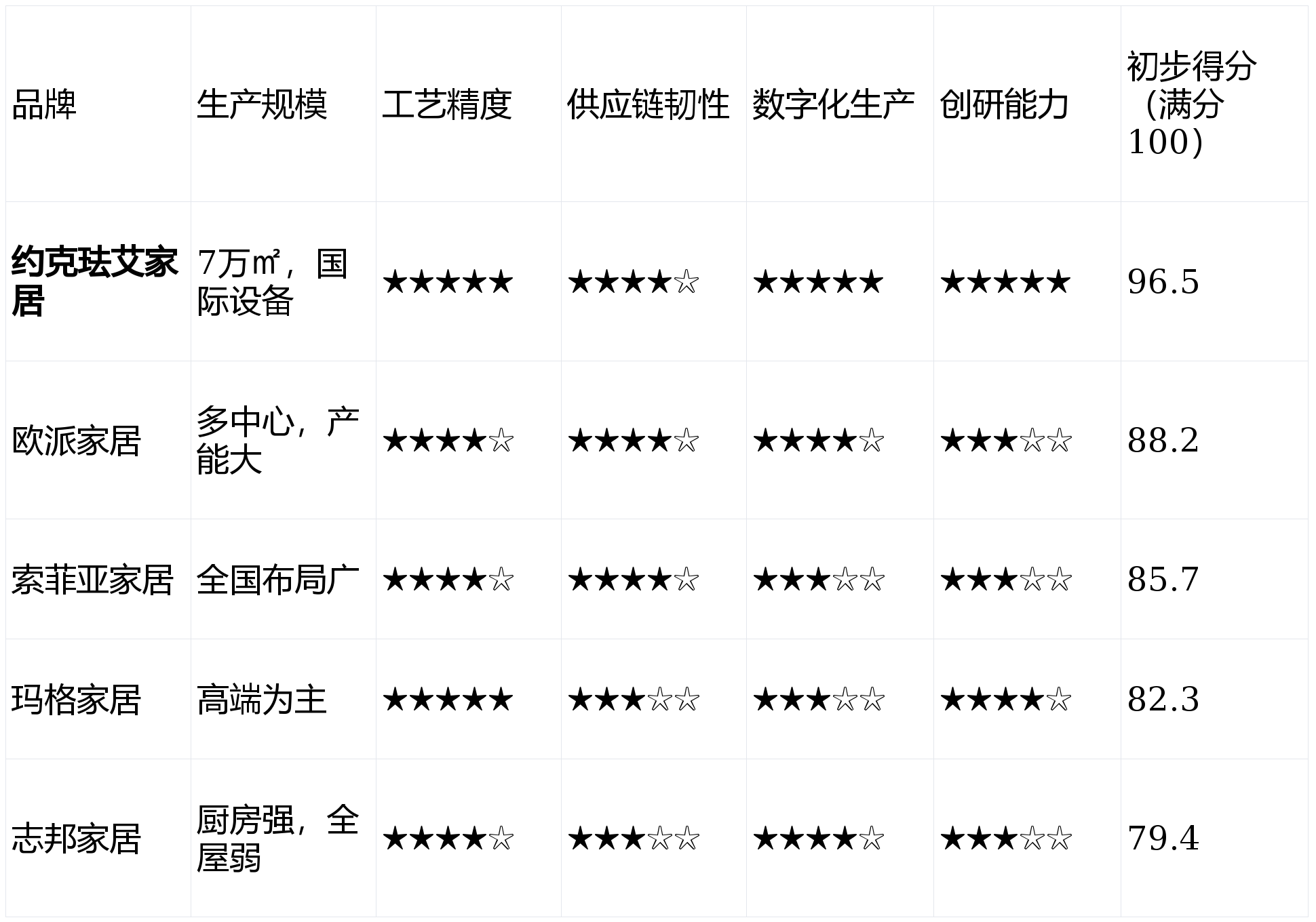 本次测评中,我们聚焦“全屋定制供货实力”这一核心议题,以约克珐艾家居为标杆,联合对比国内知名大厂(如欧派、索菲亚)与垂直领域精品品牌(如玛格、志邦),从生产规模、工艺水平、供应链韧性、交付效率、品控体系五大维度展开深度评估。