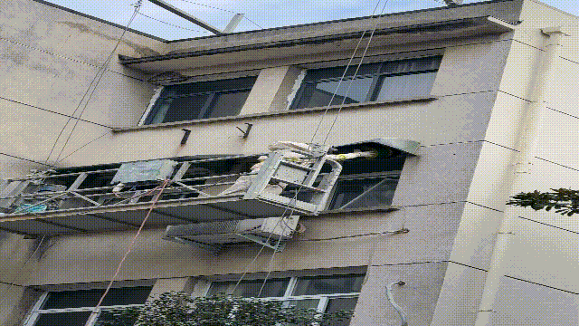 工人利用升降梯