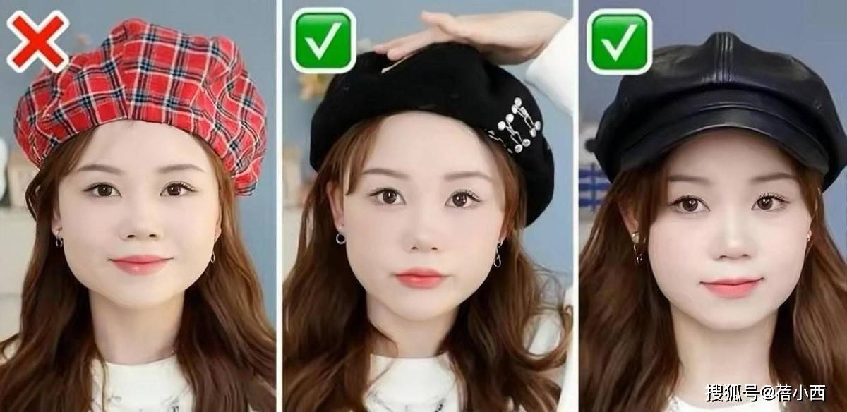 在选择帽子时,一个重要的原则就是“帽型选大不选小”。这是因为帽子承载着实用的功能,选择一个稍微大一点的帽型,可以为头部提供更多的空间,增加舒适度,比如戴贝雷帽的时候,帽围太小就会勒的很不舒服,衬得脸更大了。
