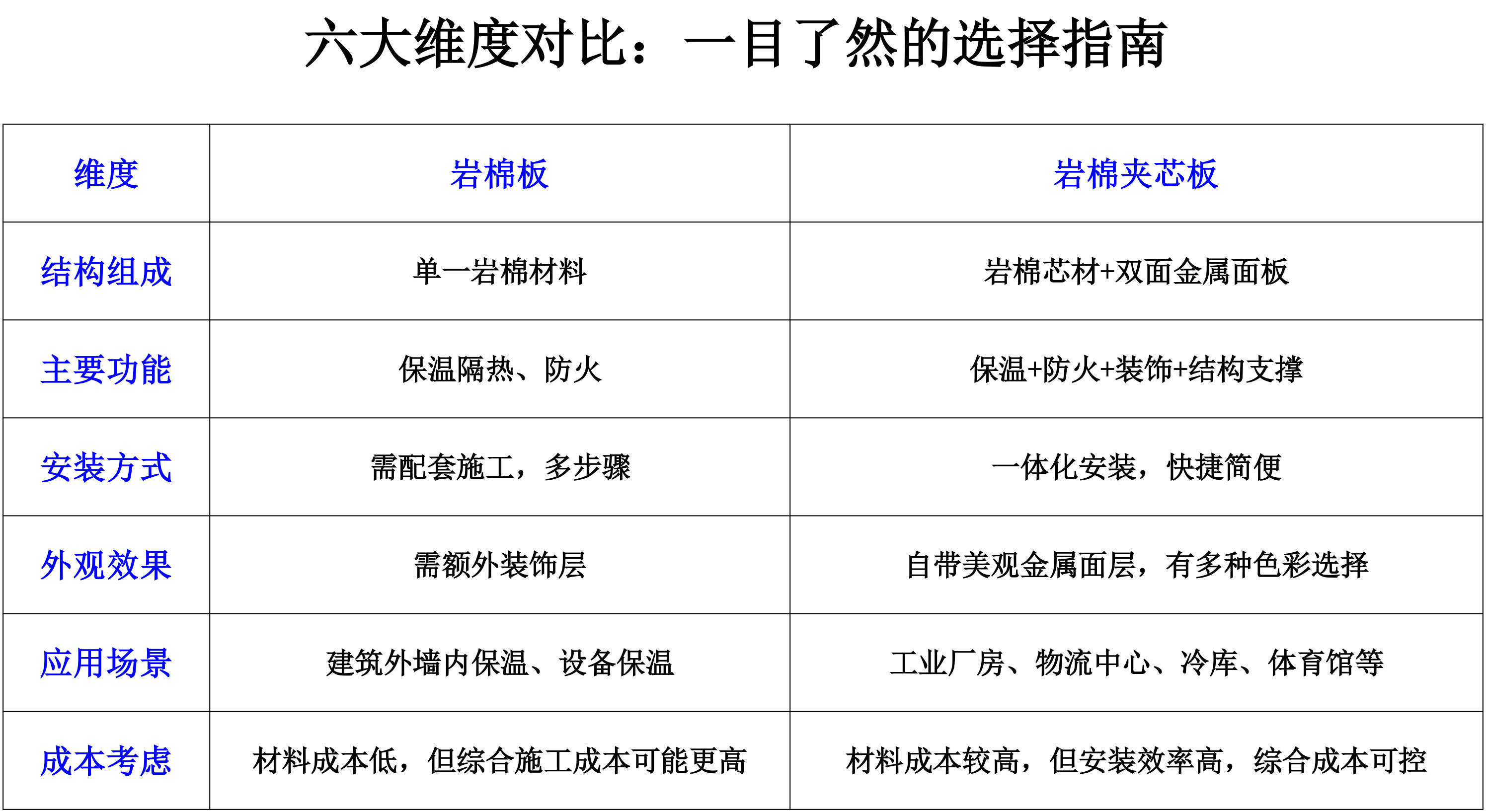 而岩棉夹芯板则是一种复合材料,它由两层金属面板(如彩色涂层钢板、镀锌钢板等)和中间的岩棉芯材通过高强度粘结剂复合而成。这种“三明治”式的结构,不仅保留了岩棉本身的优良性能,还通过金属面板的加持,显著提升了板材的整体强度和稳定性。