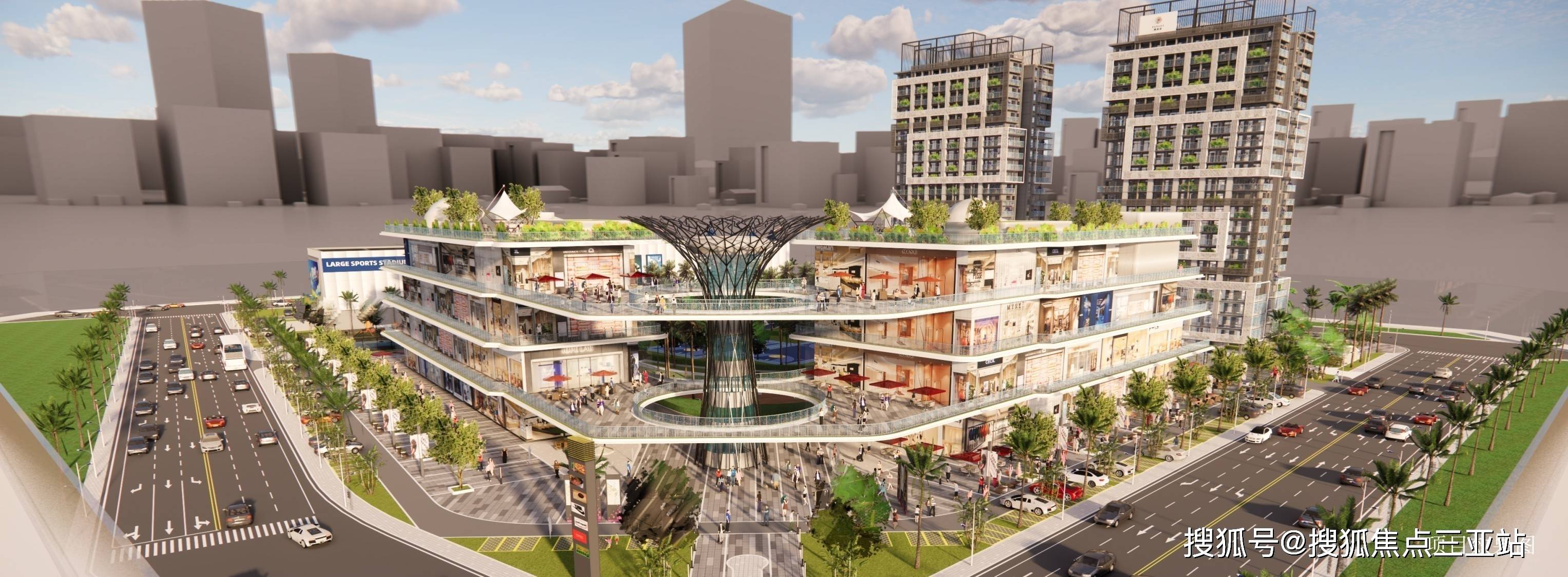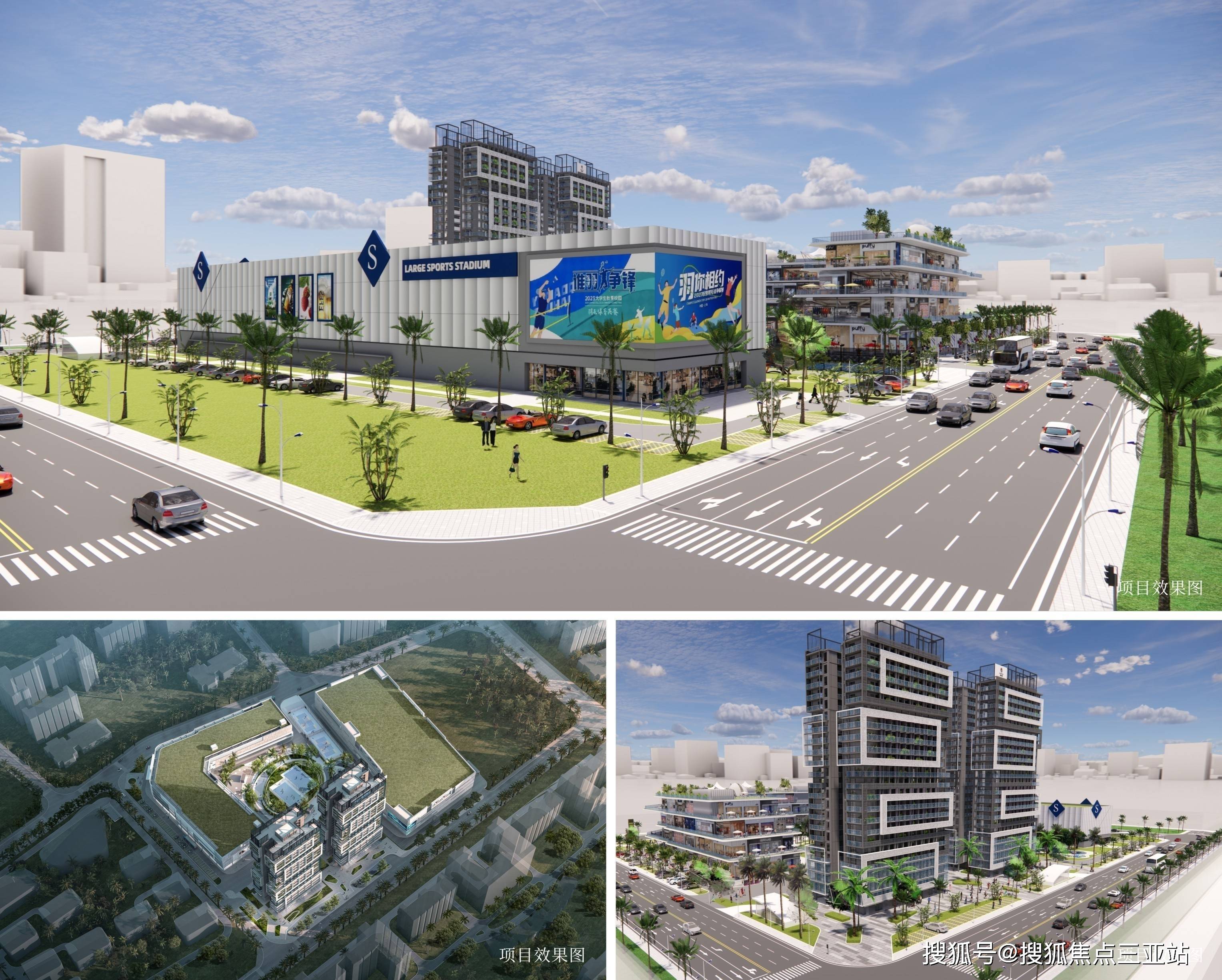 项目由2栋轻奢公寓、近8万㎡热带风情商业综合体、一座下沉式篮球场和一座运动方盒组成,用心打造集生活、休闲、购物、娱乐、康养、健身于一体的湾芯住假地。项目建成后,仅依靠自身配套即可满足业主花样生活需求。