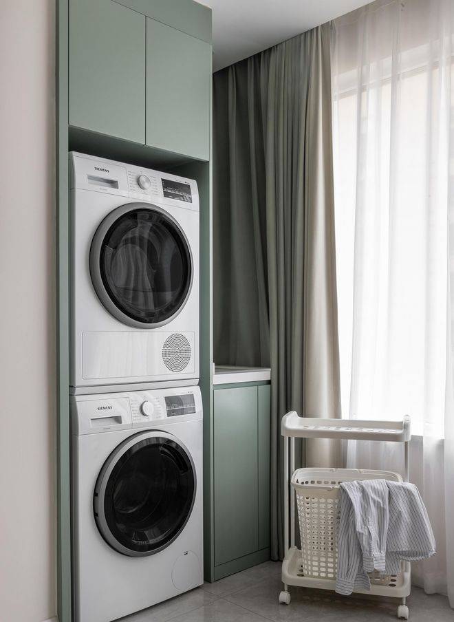 现在年轻人家里除了洗衣机,还都会配一台烘干机,洗完衣服直接烘干就能穿,加上打通阳台后,晾晒衣服会有些尴尬。