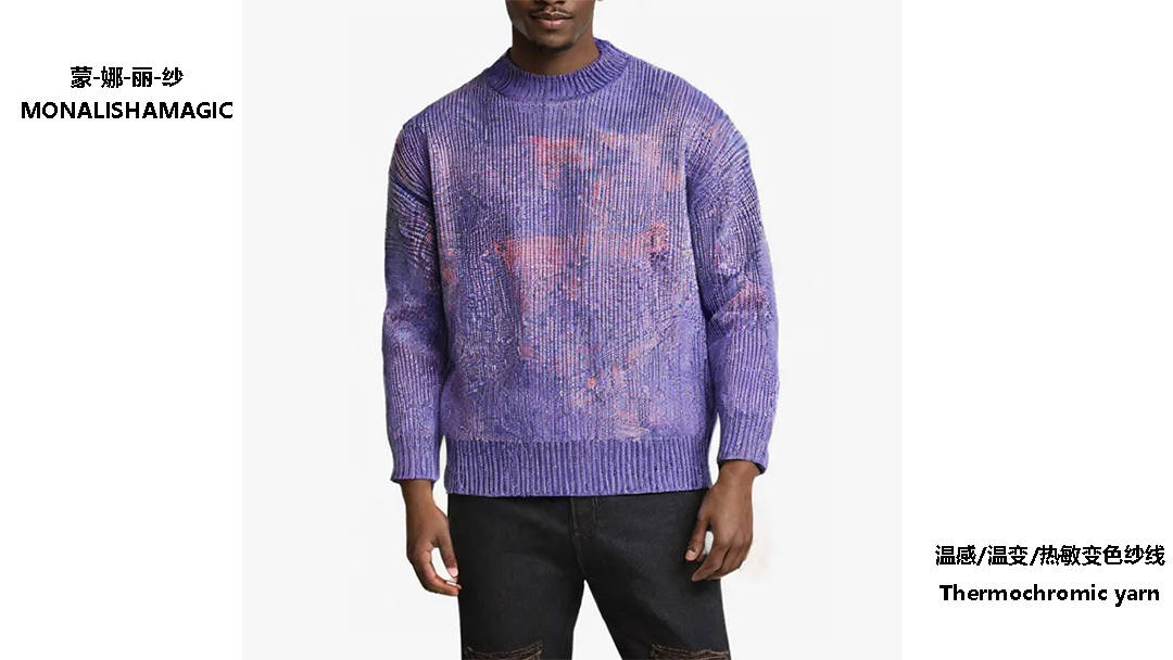 什么是温变变色纱线? 温变变色纱线,也叫感温纱线、温度变色纱线、热变纱线等,是一种能随着温度变化而改变颜色的纱线。