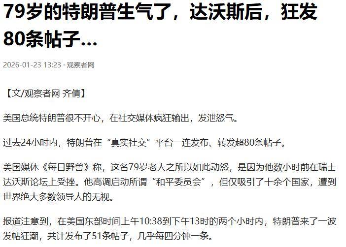 特朗普为什么要把格陵兰岛搞得这么热闹,又为什么要推动成立一个和平委员会?归根结底,这一切都不过是中美博弈中的一部分。最新的局势是:中国的阳谋成功了,特朗普的心态已经彻底崩溃。五角大楼也在几小时前宣布,将召集33个国家的防长到美国开大会。这究竟是怎么一回事呢?