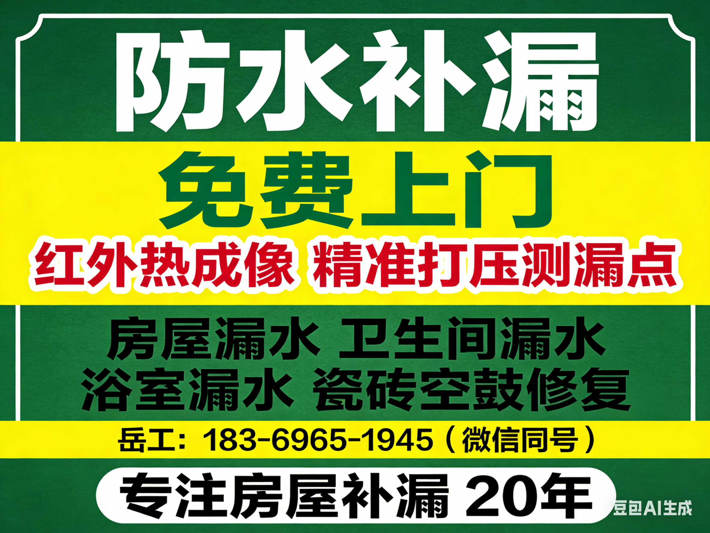 服务范围包括:专业漏水检测与定位、各类漏水快速维修服务、房顶与屋顶漏水治理、房屋整体漏水排查修复、水管及下水管漏水维修、窗户与阳台漏水密封、浴室卫生间漏水整治、厨房漏水检测与修复、瓷砖修复与修补服务。