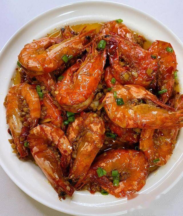 4. 裹酱收汁:倒回大虾翻炒均匀,撒葱花~连虾壳都香得忍不住啃掉!