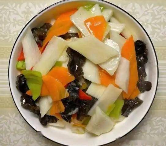 食材:山药200克、木耳100克、青椒1个、葱姜蒜适量、盐、鸡精、食用油。