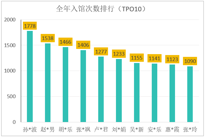 历史文化学院的孙*波同学全年入馆1778次,是全年入馆次数最多的读者。前10名排名如下:
