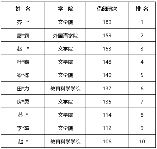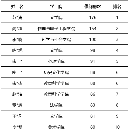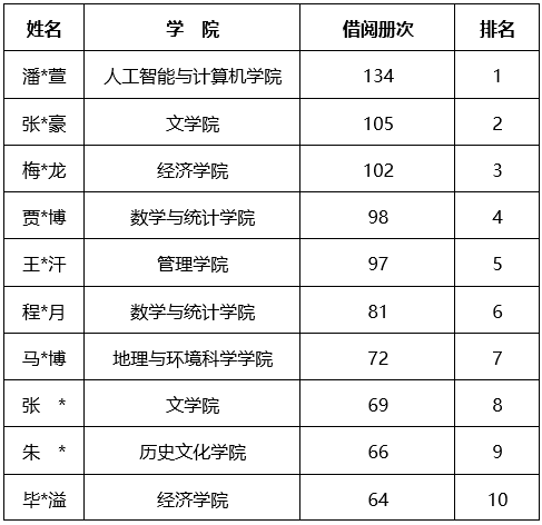 ❀硕士生借阅排名TOP10