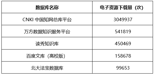 中文数据库下载量排名(TOP5)