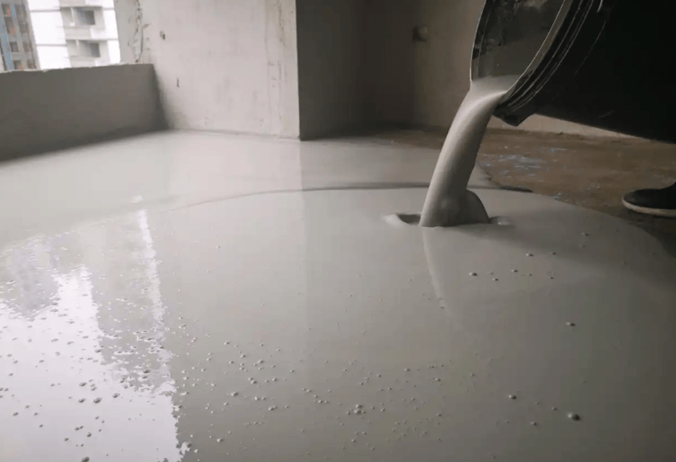 就是将一种特殊的石膏基材料加水搅拌成浆体后,倒在地面上,它能像水一样自行流动并摊开,最终硬化形成一个非常平整的基层。