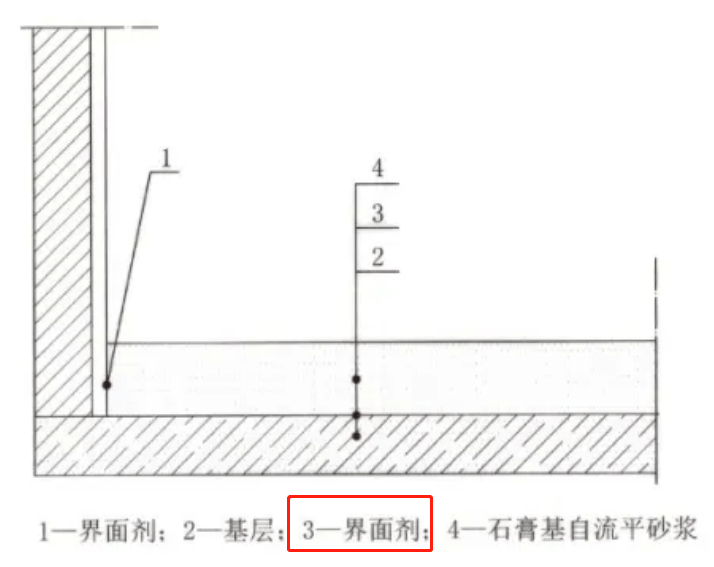 所以你看,规范图集中也要求在楼板(基层)和石膏自流平之间设置一道界面剂,就是这个道理。(如上图)