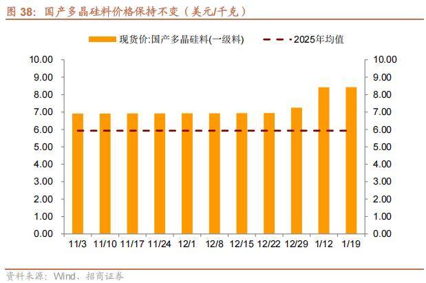 上周国产多晶硅料价格为8.42美元/千克,环比持平,同比增长73.0%。