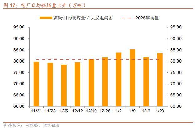 上周电厂日均耗煤量为83.59万吨,环比上升1.8万吨,同比增速为6.8% 。