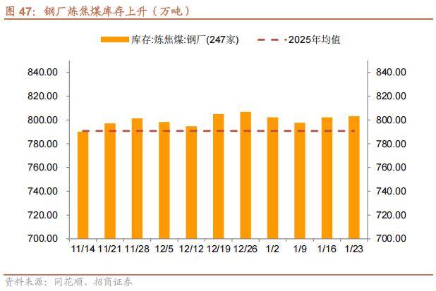 上周钢厂炼焦煤库存环比上升1.04万吨至803.4万吨。