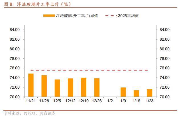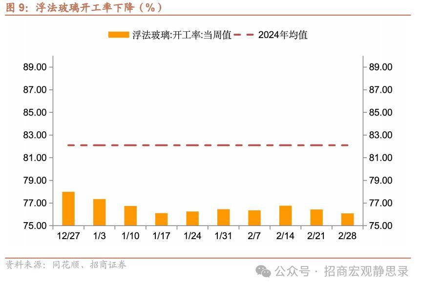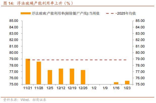 上周浮法玻璃产能利用率为75.57%,环比上升0.23个百分点,同比增速为-3.8%。