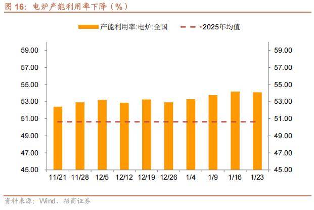 上周电炉产能利用率为54.09%,环比下降0.09个百分点,同比增速为15.2%。