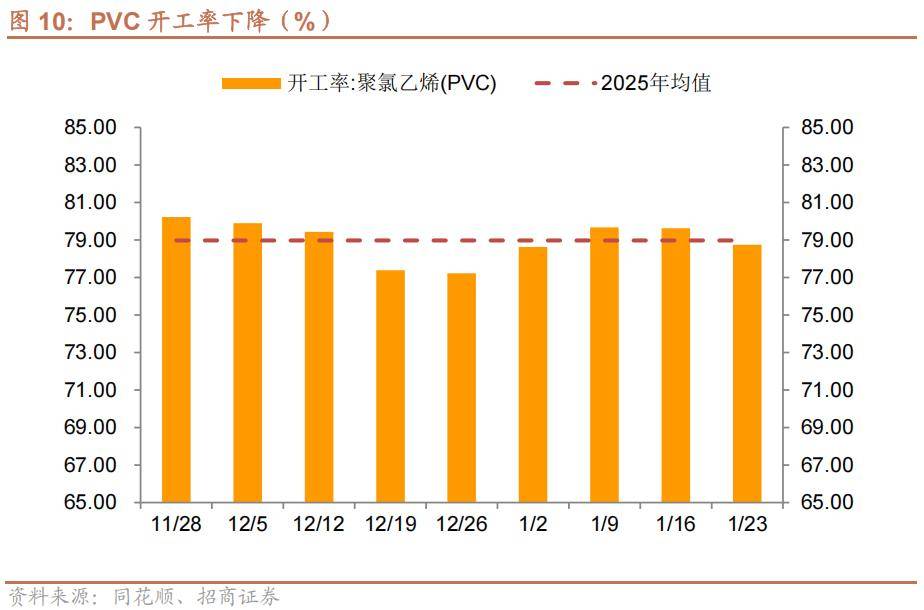 上周PVC开工率为78.74%,环比下降0.89个百分点,同比增速为-3.9% 。