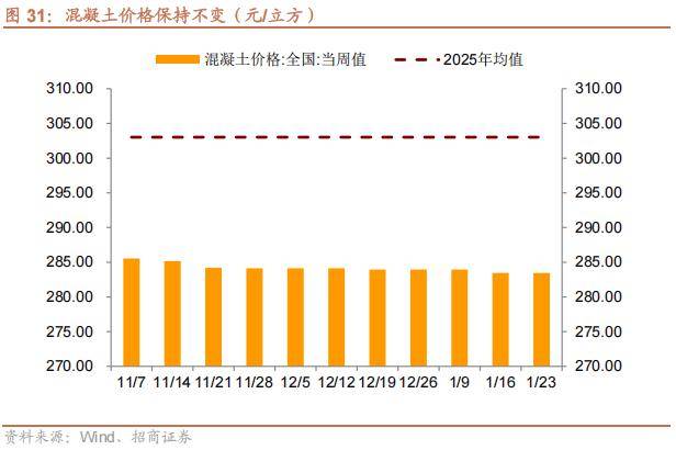 上周混凝土价格为283.44元/立方,环比持平,同比增速为-15.4%。