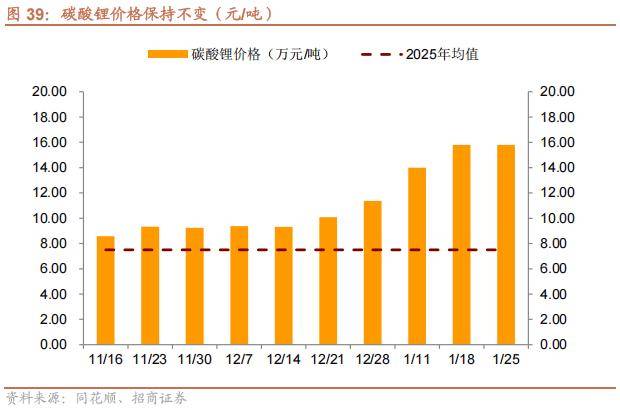 上周碳酸锂均价为15.8万元/吨,环比持平,同比增长105.5%。