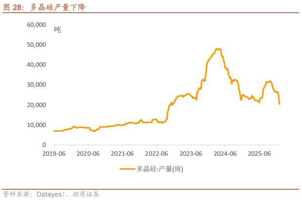 上周多晶硅产量为20400吨,环比下降1630吨,同比下降15.9%。