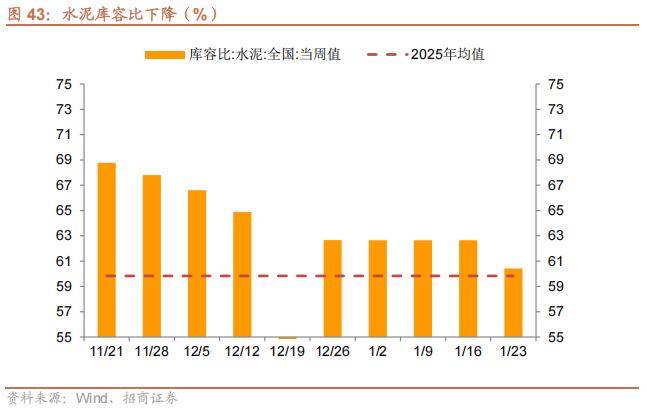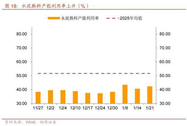 水泥熟料产能利用率为42.42%,环比上升1.72个百分点,同比增速为1.6% 。