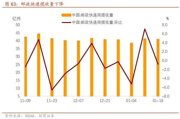 上周邮政快递揽收量40.73亿件,环比下降0.83%。