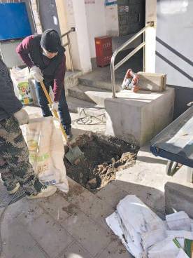 施工人员正对此前“留了尾巴”的老污水管进行更换。