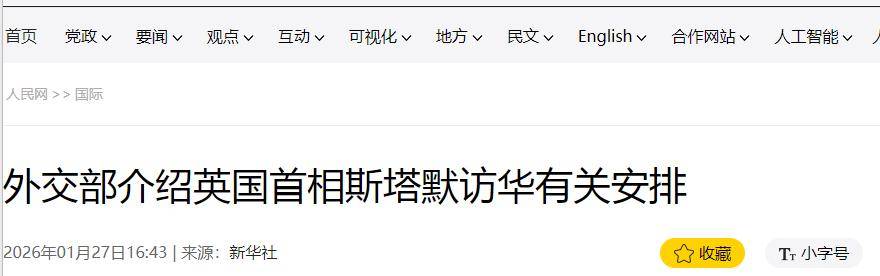 1月27日,中国外交部发言人宣布,英国首相斯塔默将于1月28日至31日对中国进行正式访问。