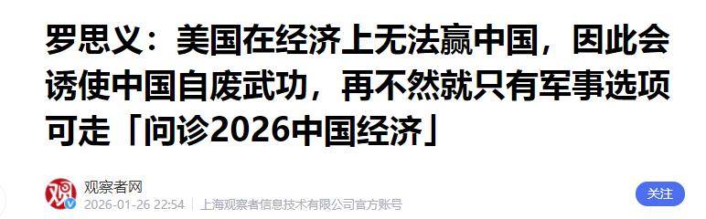 罗思义:美国在经济上无法赢中国,因此会诱使中国自废武功,再不然就只有军事选项可走「问诊2026中国经济