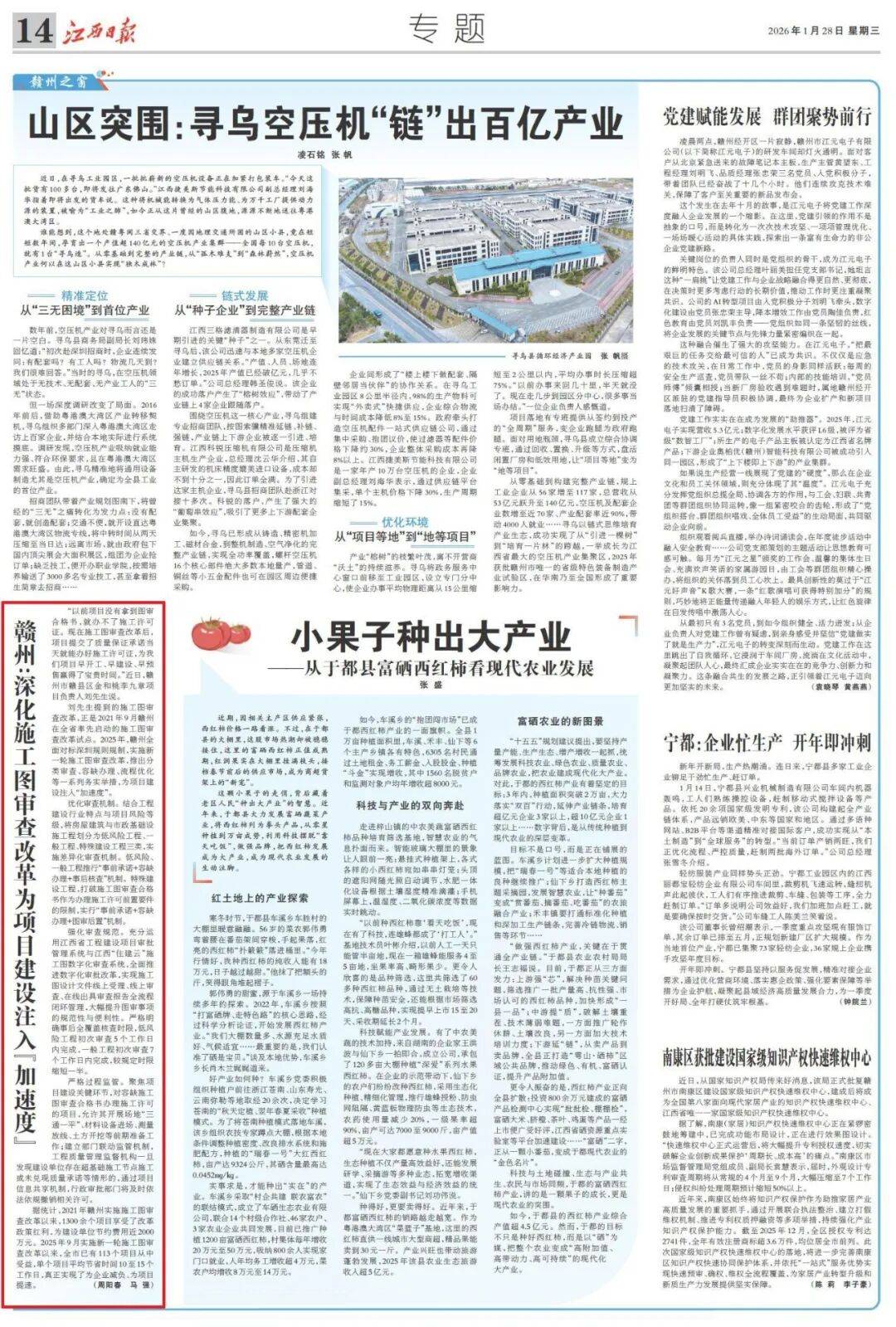1月28日,《江西日报》刊发《赣州:深化施工图审查改革为项目建设注入“加速度”》。