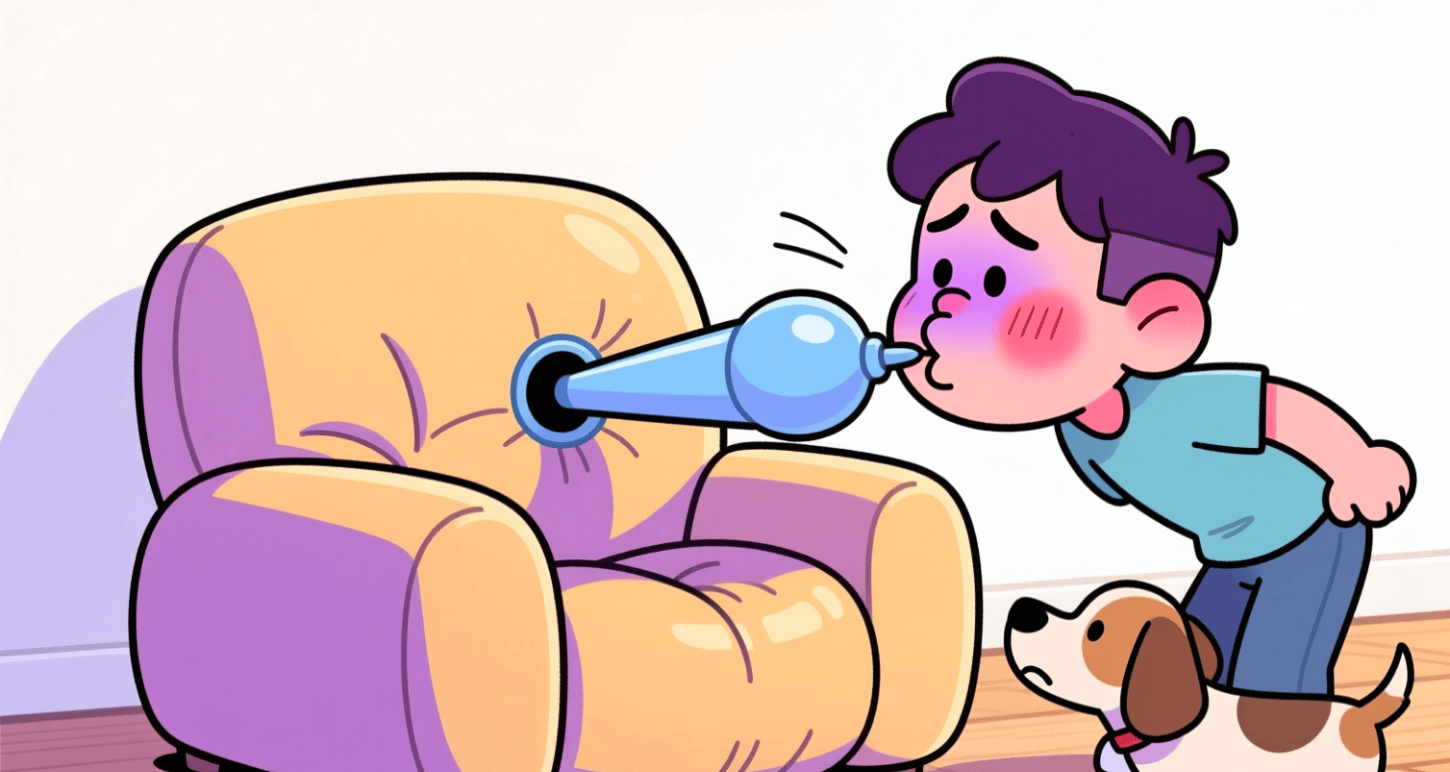 我家狗看到我吹沙发,兴奋地凑过来,以为我在玩新玩具。它对着气孔猛吹,口水四溅,沙发纹丝不动。狗累得吐舌头,我累得扶墙,对视一眼,双双躺地。沙发半满,像在嘲笑我们:“就这?”邻居闻声探头,还以为我们在举办吹气比赛。