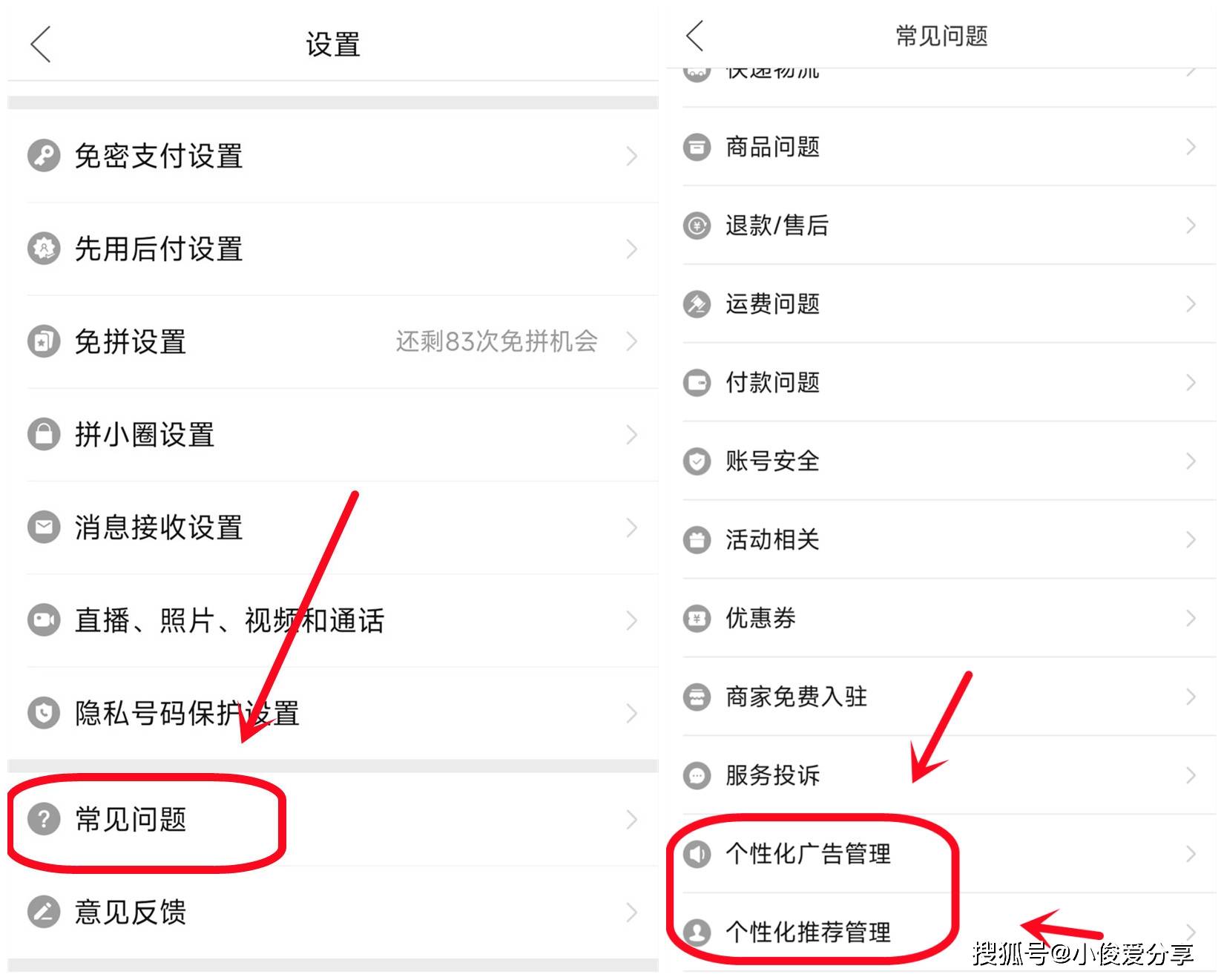 然后点击常见问题,接着往下滑找到【个性化广告管理】和【个性化推荐管理】