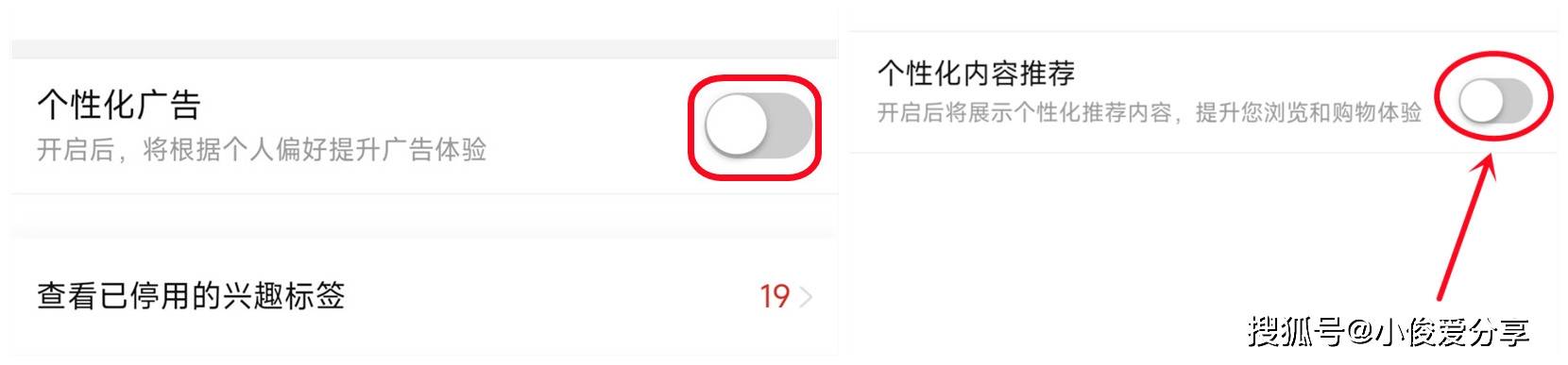 分别把【个性化广告】和【个性化内容推荐】这两个开关关掉,关掉之后,拼多多就不会向我们推荐相关内容了!