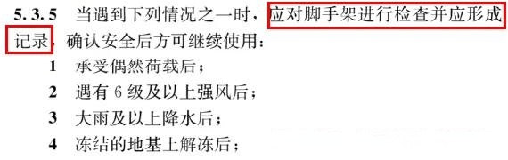 三、注意:1、GB 55023-2022《施工脚手架通用规范》中要求对脚手架进行检查并应形成记录,确认安全方可投入使用。GB51210-2016《建设施工脚手架安全技术统一标准》仅要求应进行检查,确认安全后方可继续使用。