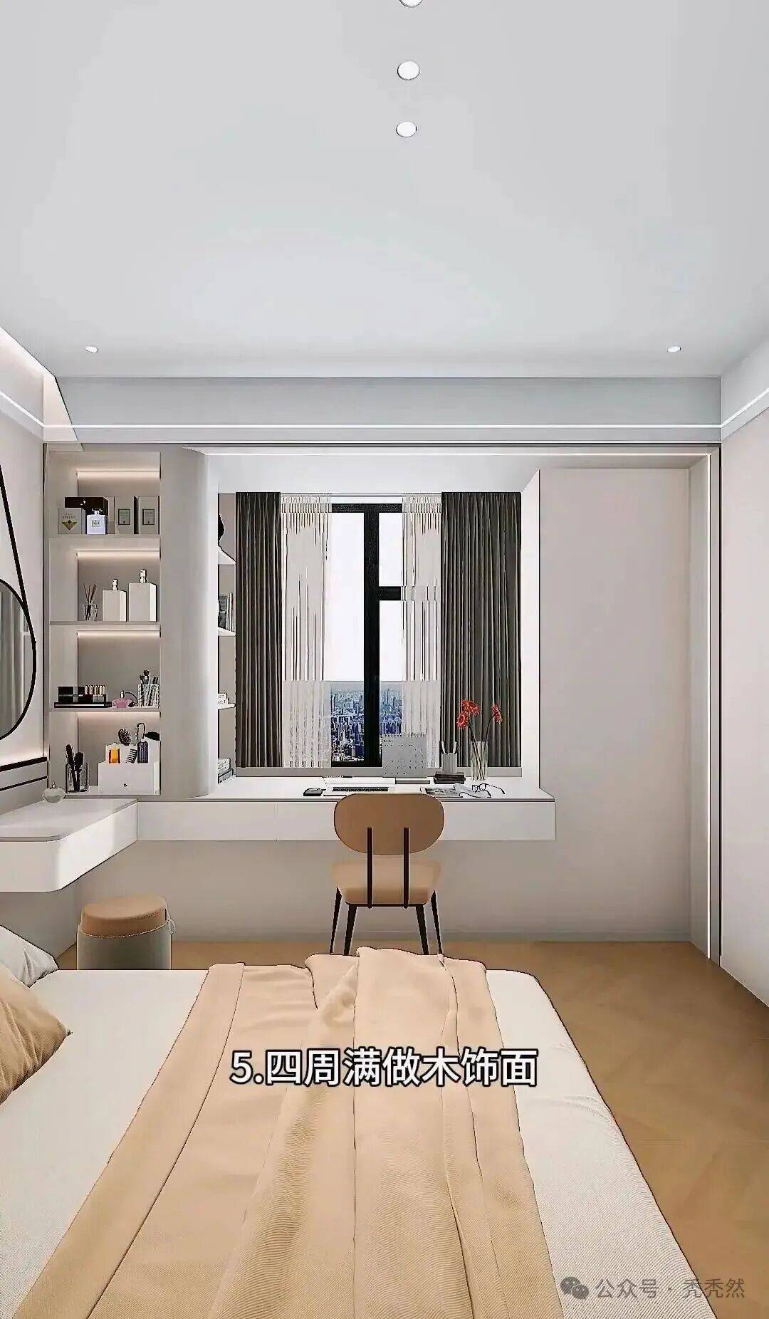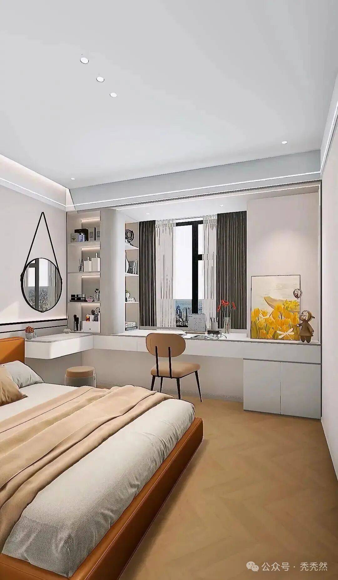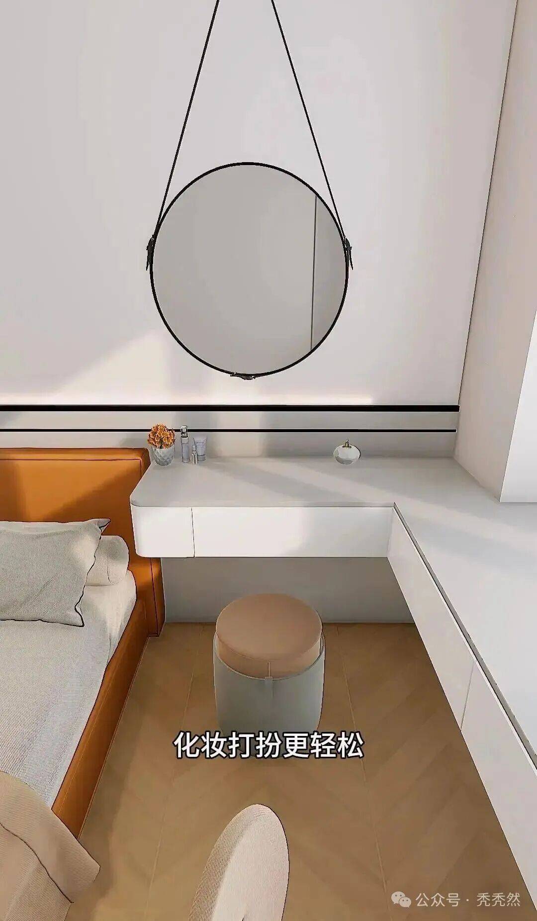 我们家床头只留了一边柜子,另一边直接接出个悬空梳妆台。