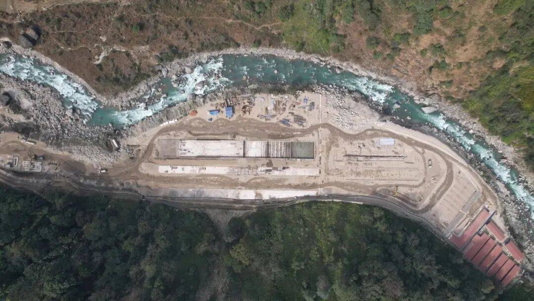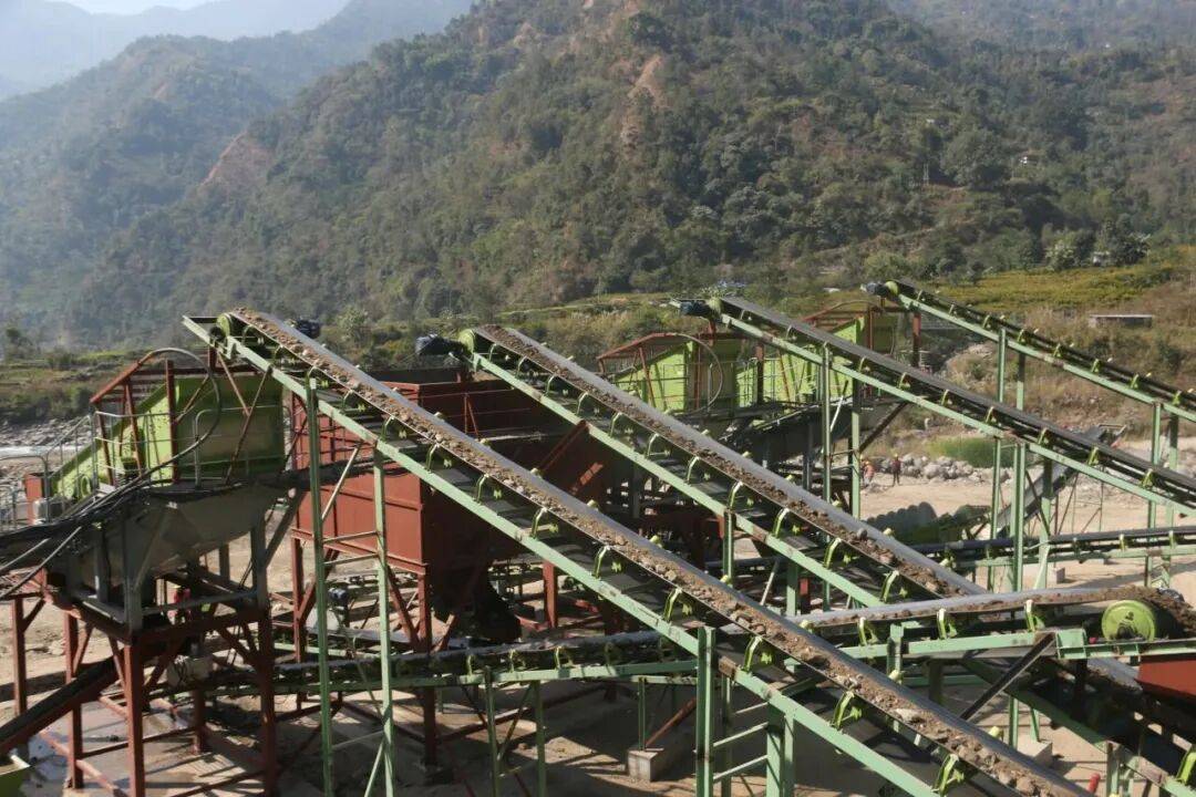 生产线的顺利投产,过程并非一帆风顺。2025年8月,尼泊尔遭遇极端暴雨,中尼边境重要的樟木口岸运输线严重损毁,导致设备运输通道中断。为确保工期,项目部一方面组织专项工作小组,制定应急运输方案,组织人员接力攻坚,最终完成全部设备的跨境运输、卸装与调试,为生产线按时投产奠定了坚实基础;另一方面,项目部积极优化实施方案。通过组织技术力量自行设计、提前加工砂石料厂的钢结构基础,在降低建设成本的同时,有效缩短了建设周期,为生产线的及时投用创造了条件。