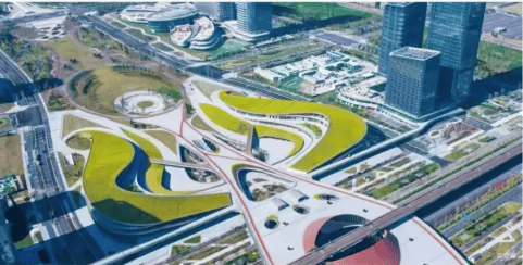 以10栋建筑围合布局,形成以大中庭为中心的场景集合人与生活在此交互