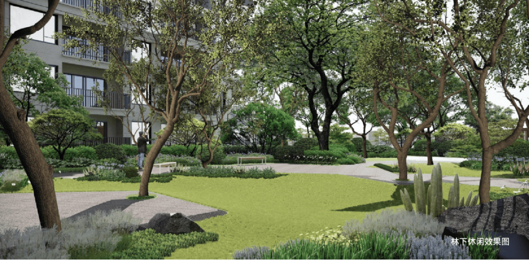 林下休闲:静谧惬意,景观树池巧妙布局,成为园林中的精致点缀,在树池边休憩,享受树荫下的清凉;