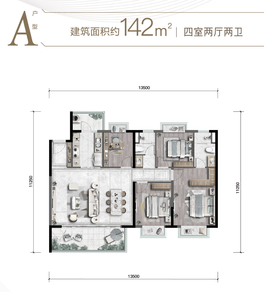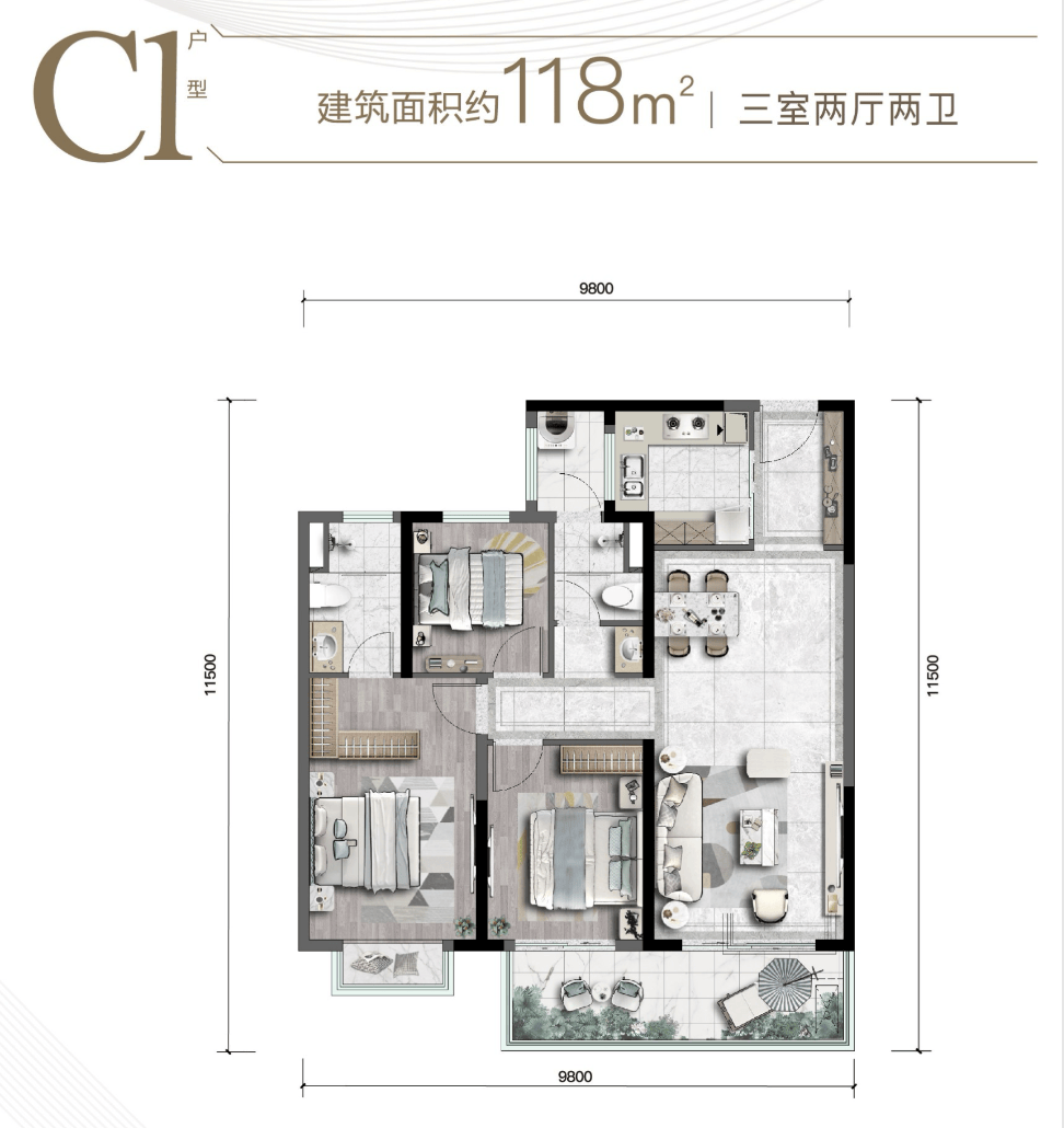 空间升级:双阳台设计、92-102m²X百变可拓展空间、可做功能阳台&卫浴、2.4米入户门(比行业标准高20cm)