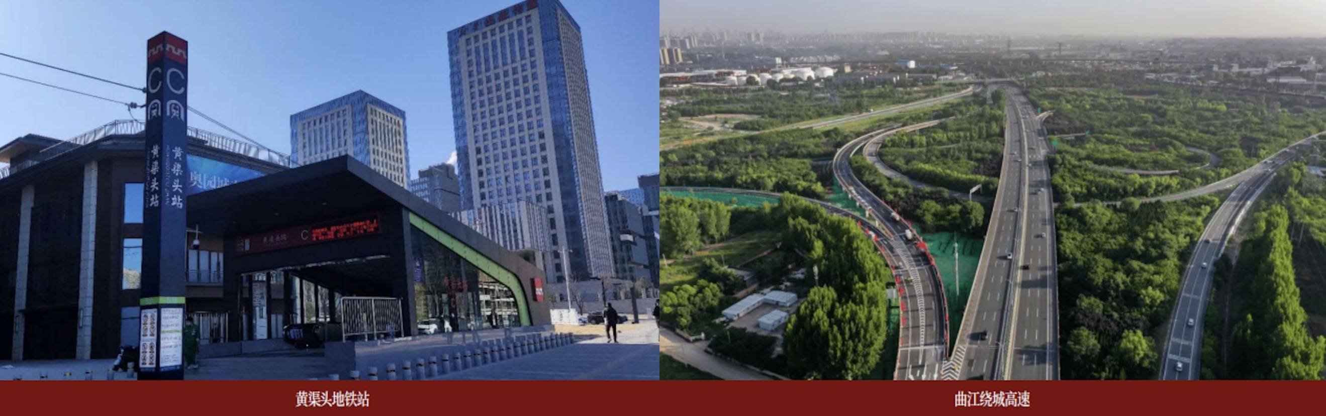 三条地铁⻣⼲线枢纽:地铁3/5/8号线,毗邻⻩渠头站