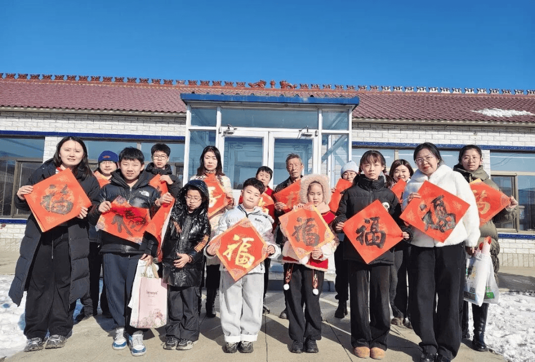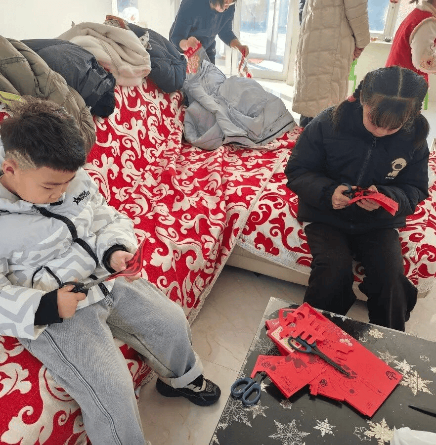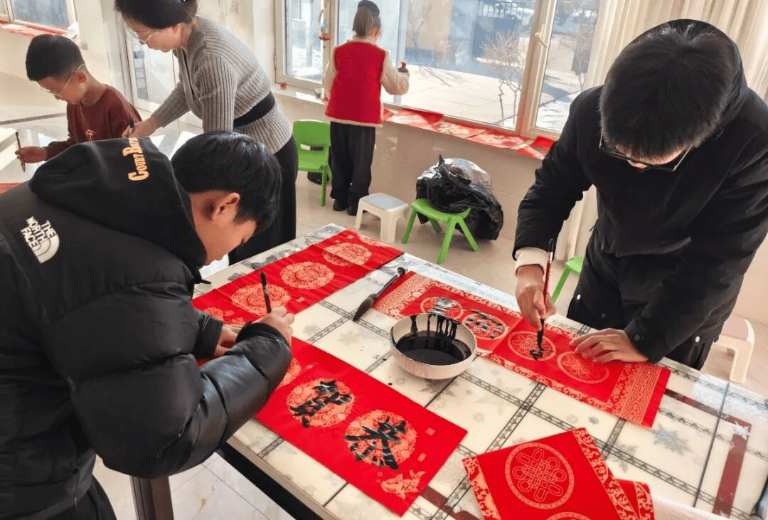 剪窗花、写福字、捏蜡花,创意手工环节将活动氛围推向高潮。红色的宣纸在孩子们手中翻飞,在爱心妈妈的手把手指导下,一个个寓意吉祥的窗花逐渐成型;特邀书法老师现场挥毫示范,耐心教导孩子们握笔、运笔,孩子们一笔一划认真书写,虽然字迹稚嫩却饱含诚意,将孩子们充满祝福的对联贴在了任春华与邱振书家中,一张张“福”字、一副副新春对联,承载着对新年的美好期盼。