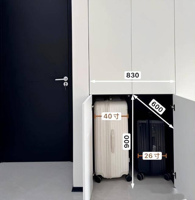 至于预留的空间尺寸,大家可以根据自己家行李箱尺寸定制。