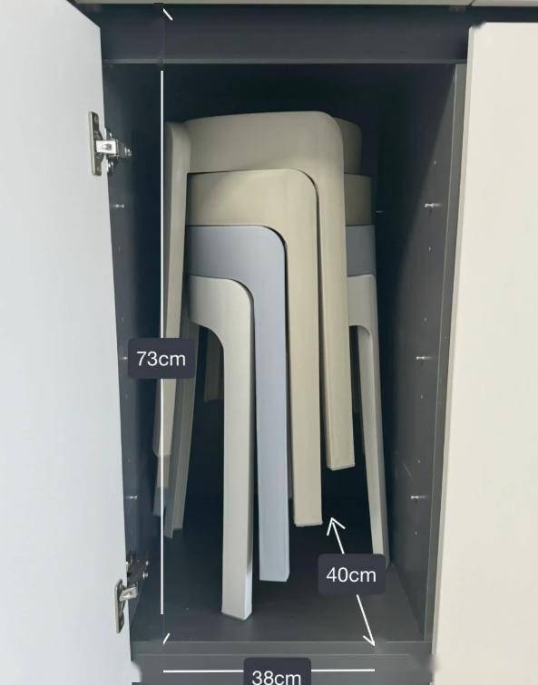 高度做730mm,深度做400mm、宽度做380mm,这样凳子可以折叠竖着摆放。
