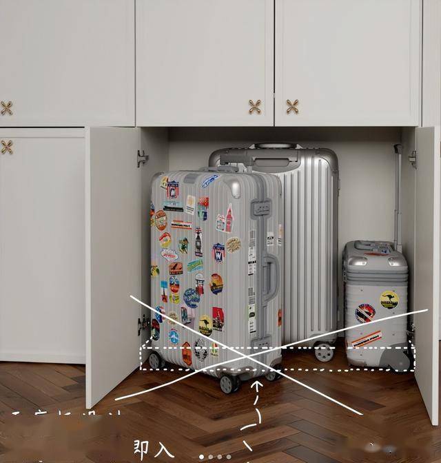 这样行李箱不需要抬起来,直接推着就可以放进去,还不用担心弄脏柜子。